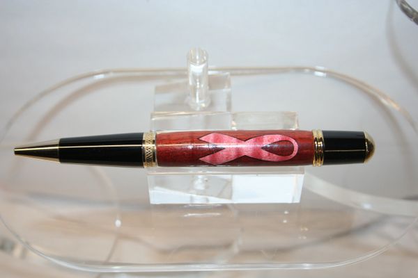 Handcrafted Wooden Pen Breast Cancer Awareness In A Bloodwood Base