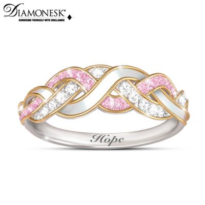 Hope Diamonesk Womens Ring Support Breast Cancer Awareness