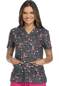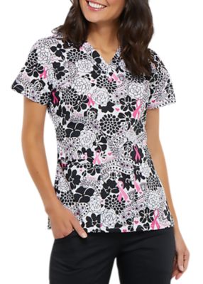 Cherokee Scrubs Top Breast Cancer Awareness V Neck Top Springtime