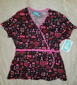 Scrub H Q Hearts Breast Cancer Awareness Scrub Top Size Large Ebay