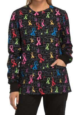Cherokee Always Aware Breast Cancer Awareness Print Scrub Jackets