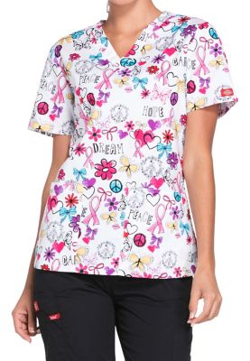 Dickies Eds Dare To Dream Breast Cancer Awareness V Neck Print Scrub