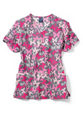 Print Ribbon Print Scrub Tops And Breast Cancer Awareness Scrubs At