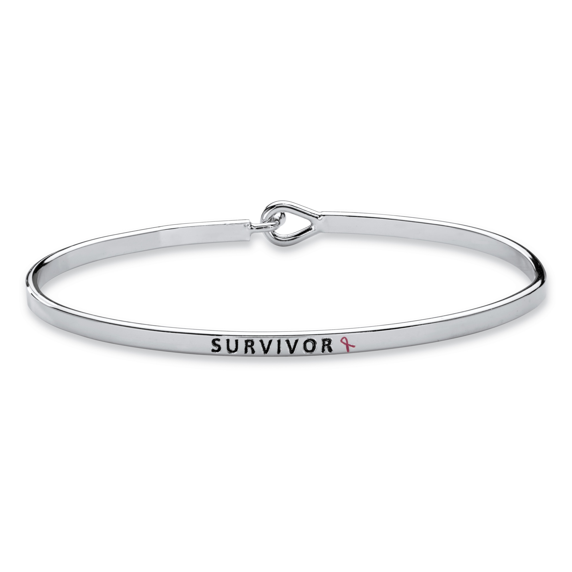 Breast Cancer Survivor Inscribed Bangle Bracelet In Silvertone 7